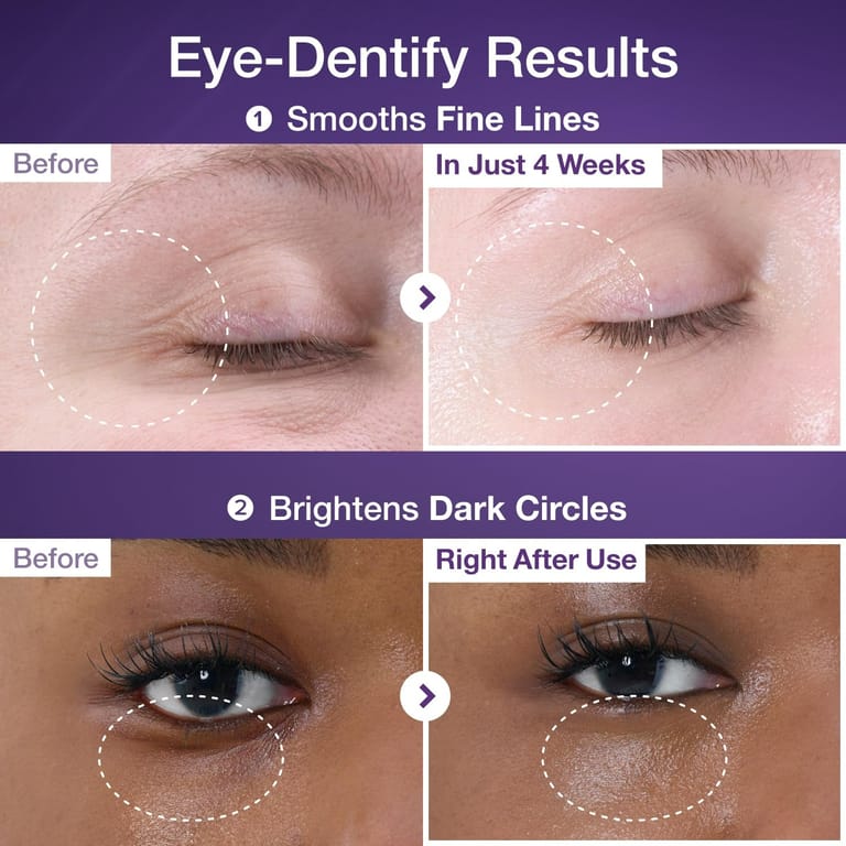 Clinically proven to improve 5 types of eye wrinkles (eye wrinkles, under-eye wrinkles, deep lines between eyes and cheeks, inner eye lines, and upper eyelid wrinkles) while restoring volume and elasticity to the hollow under-eye area. It visibly reduces dark circles, hyperpigmentation, and discoloration, giving you a brighter, fresher look in just 4 weeks.
