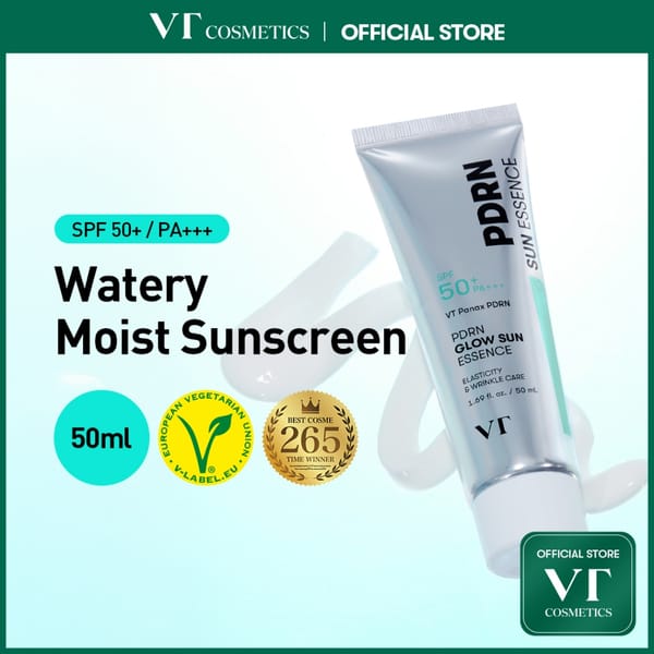 Experience advanced sun protection and radiant skin with VT Panax PDRN Glow Sun Essence. Boasting a powerful SPF50+ PA+++ shield 50ml, this ultra-lightweight, 60% water-based formula hydrates deeply while defending against harmful UV rays. Infused with revitalizing wild ginseng, rejuvenating PDRN, and soothing panthenol, it nourishes and strengthens your skin barrier for a healthy, luminous glow. Its non-greasy, fast-absorbing texture makes it perfect for daily use and compatible with makeup, leaving your skin fresh and dewy all day long. Now available in a convenient 50ml tube, ideal for use at home or on the go. Discover sun care that goes beyond protection—nourish, glow, and protect in one effortless step.